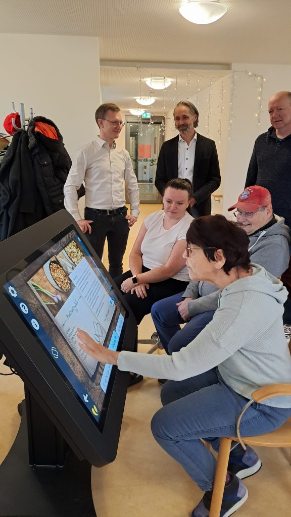 Selina Mischko zeigte, wie vielseitig das Gerät genutzt wird: „Wir nehmen es auch mit zum gemeinsamen Kochen. Es bietet tolle Rezepte, die mit Bildern und Symbolen erklärt werden. Und in der Mittagspause lassen wir ein Kaminfeuer auf dem Bildschirm lodern – das beruhigt und schafft eine angenehme Atmosphäre.“